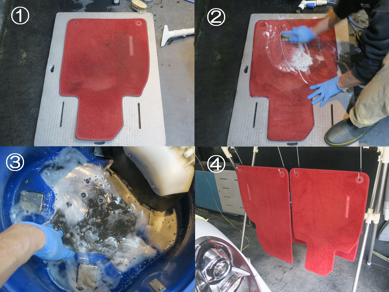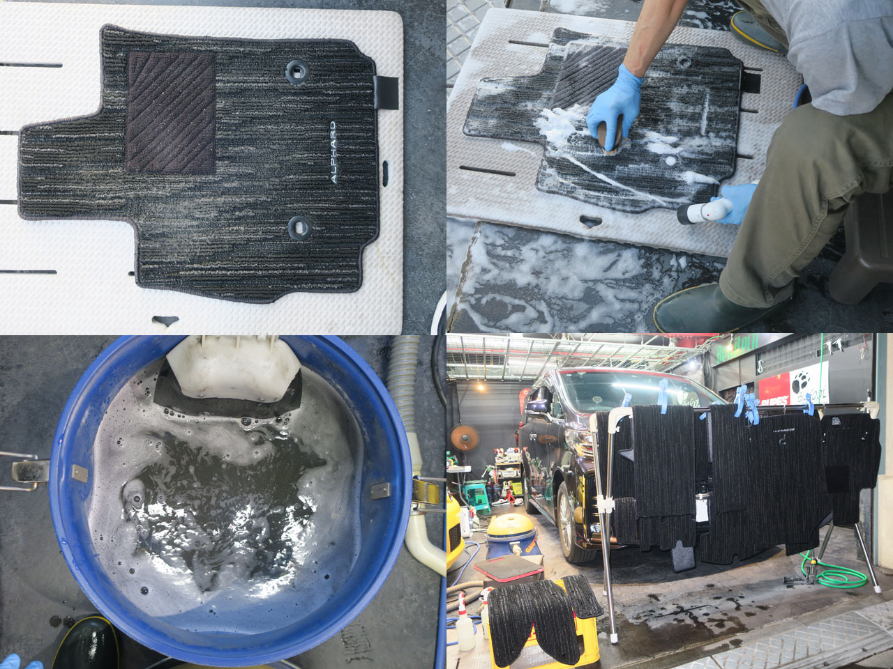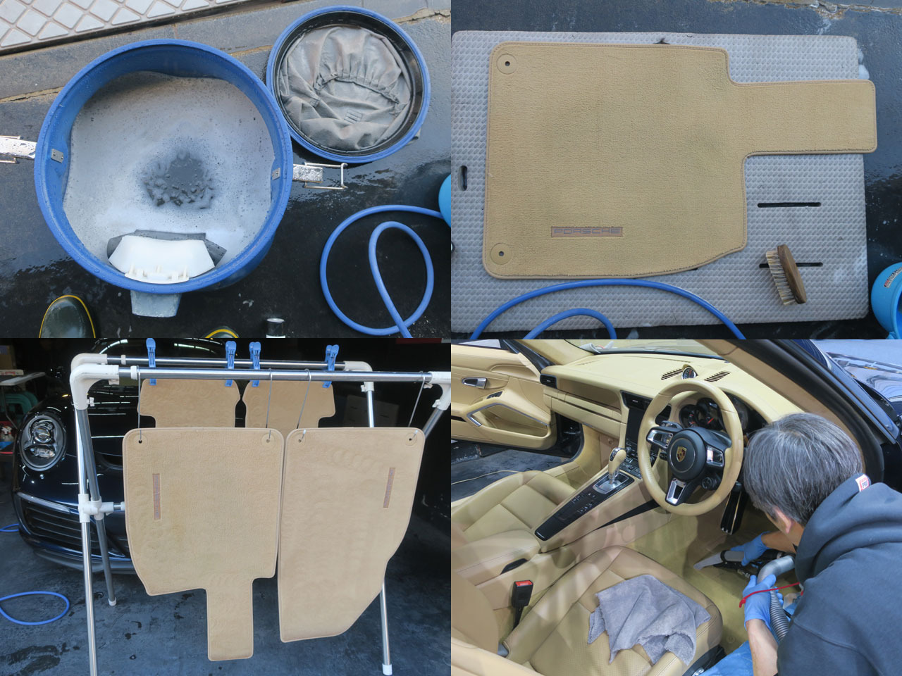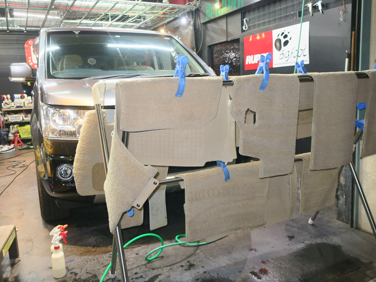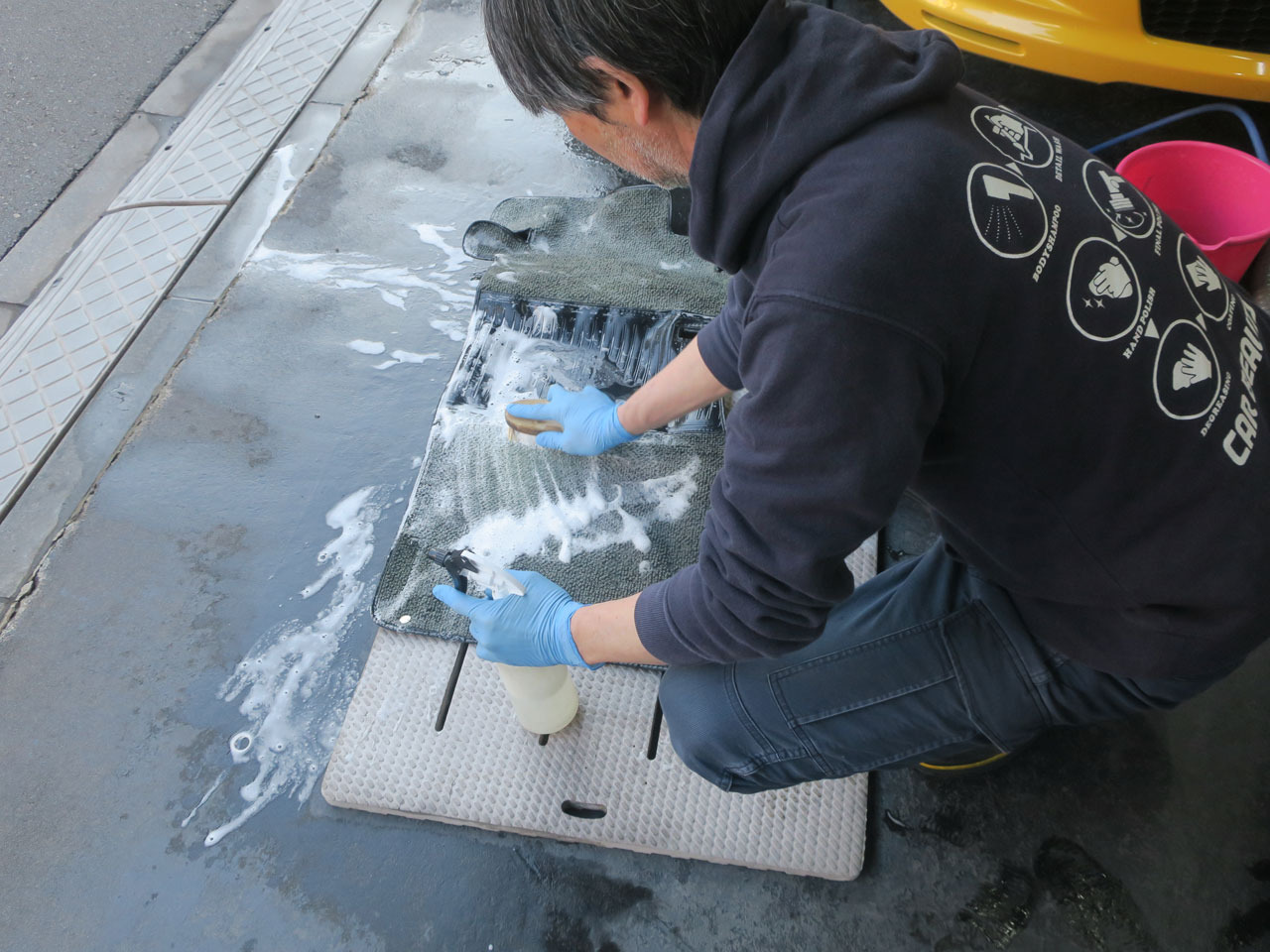 外したフロアマットは車外で入念に洗浄&乾燥