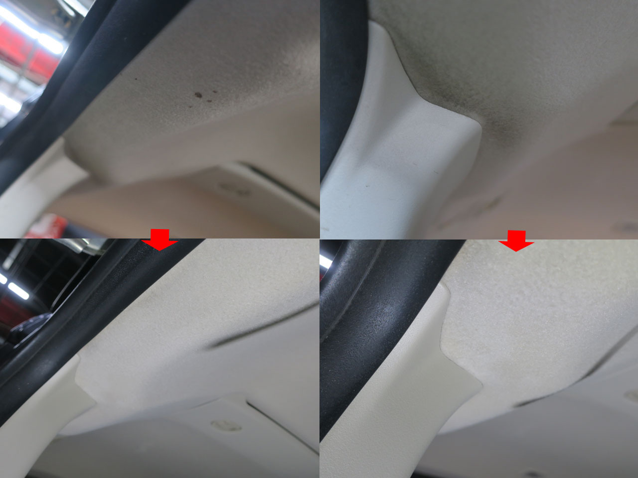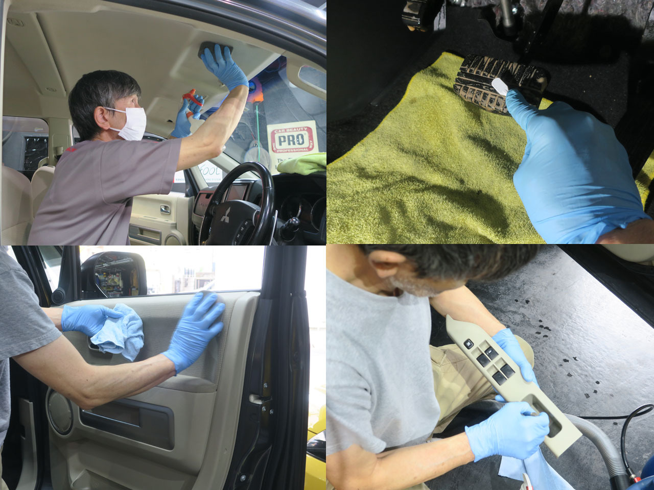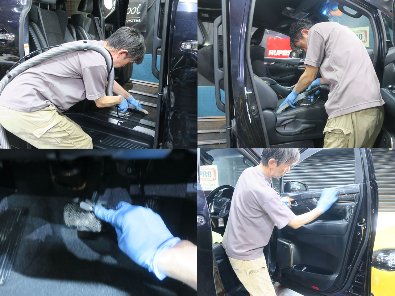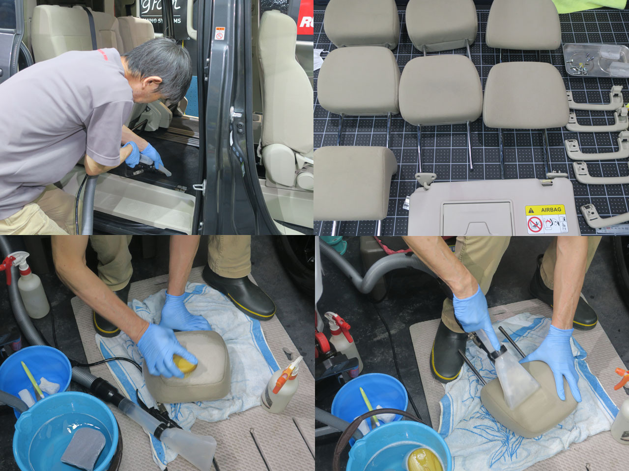 助手席側、後部座席も同じ様に洗浄していきます