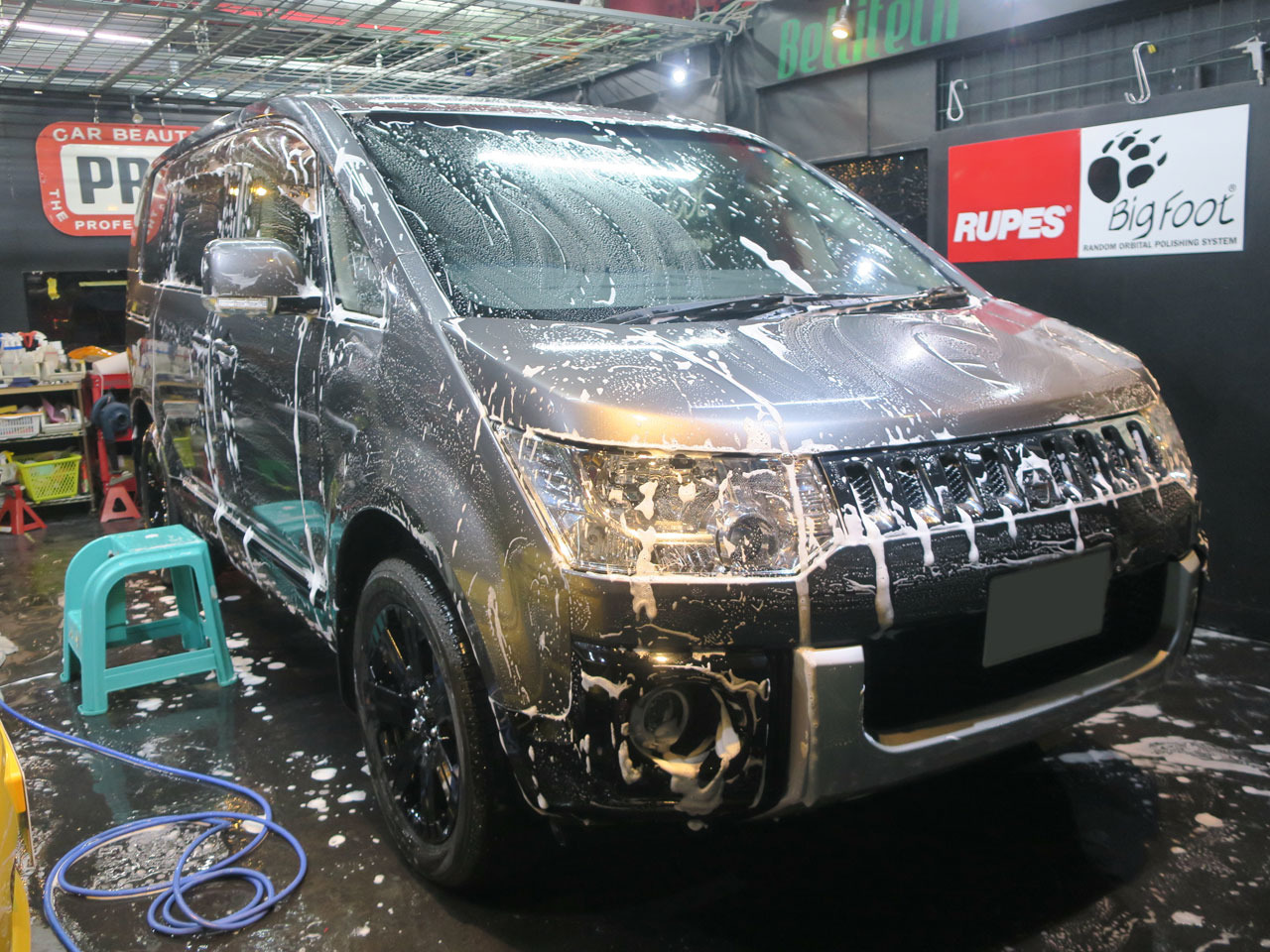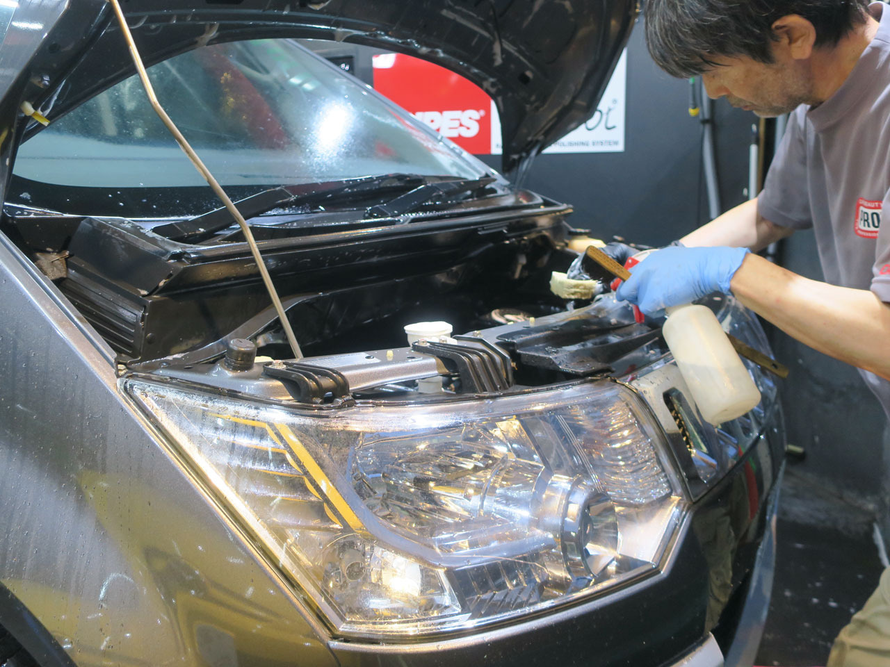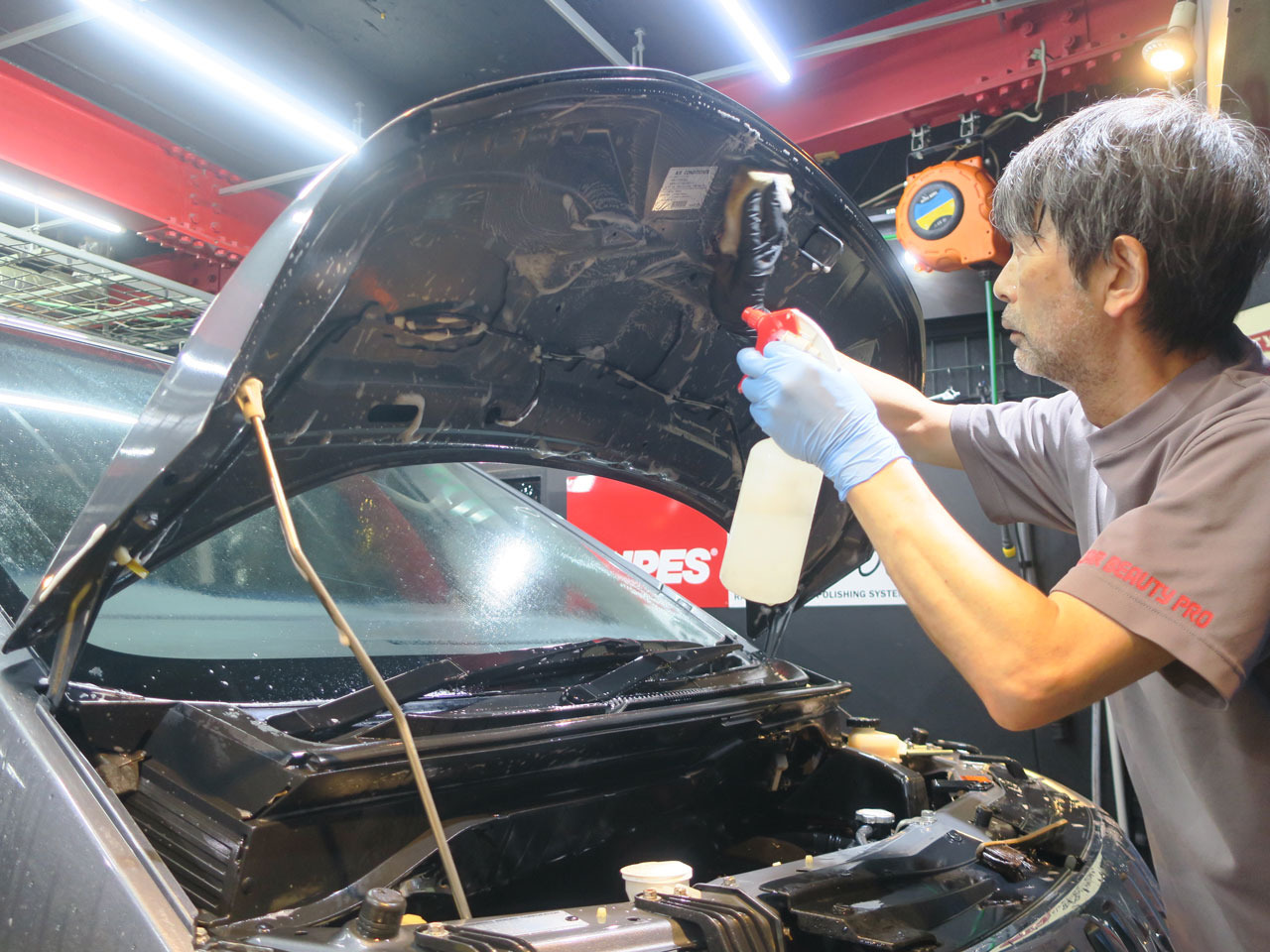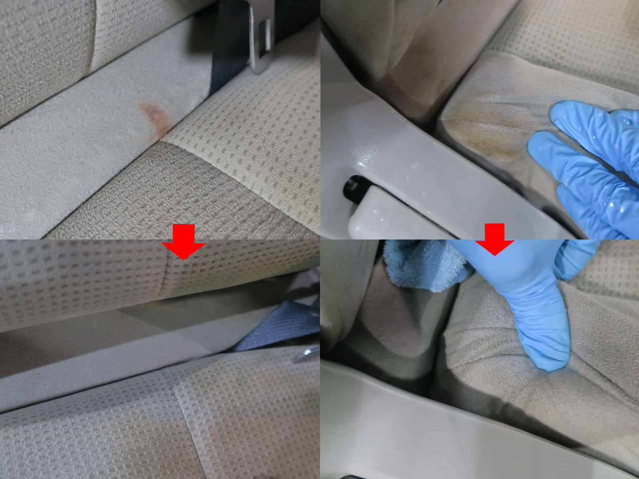 助手席側、後部座席も同じ様に洗浄していきます