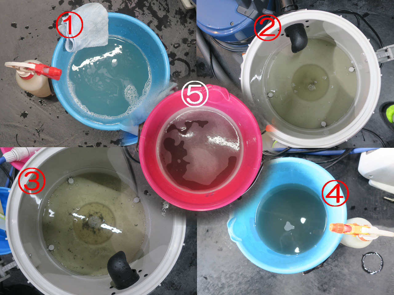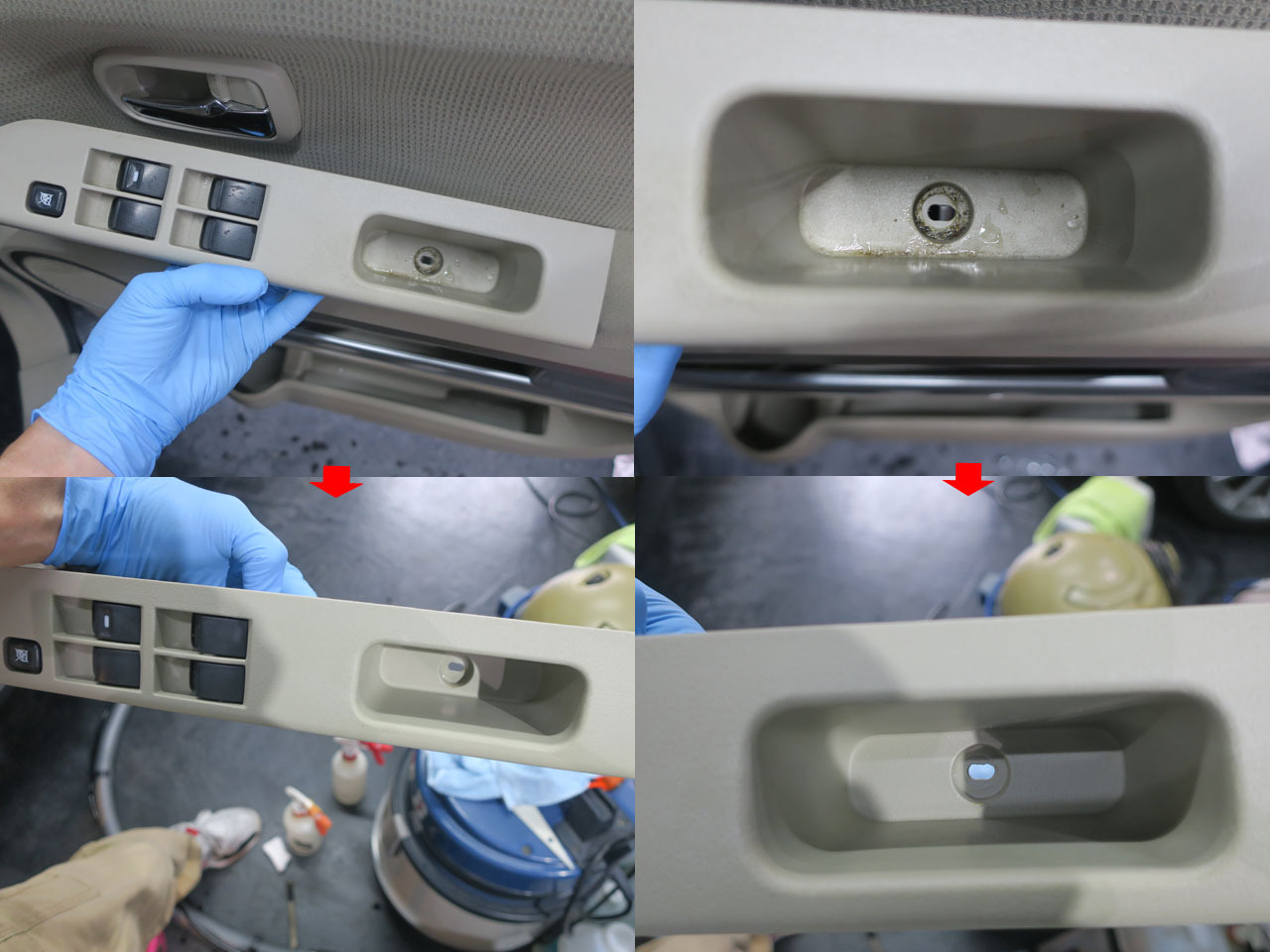 ハンドル・ダッシュ周りの汚れ(洗浄廃水)