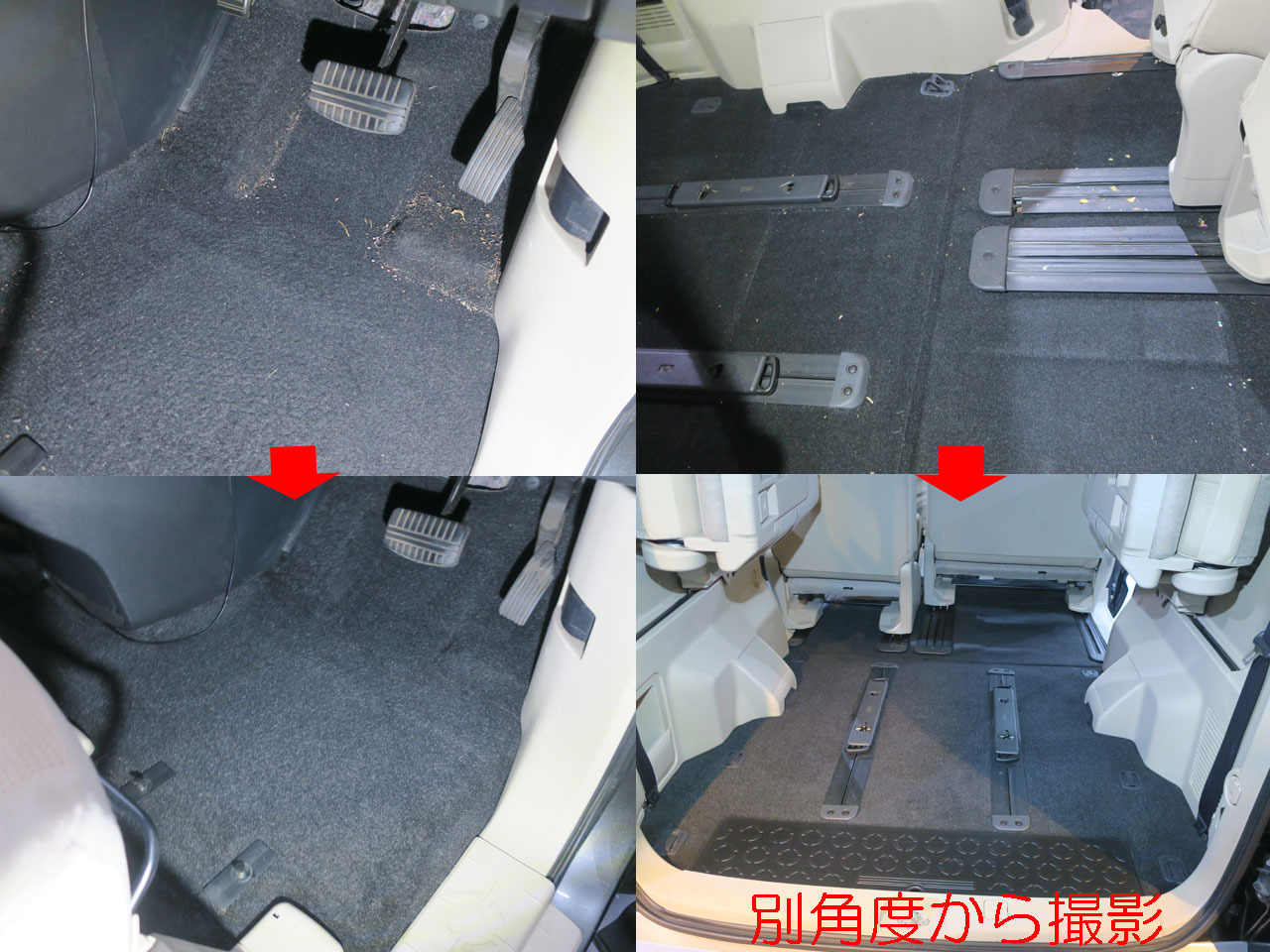 フロアマットを外し車内のバキューム掛けから