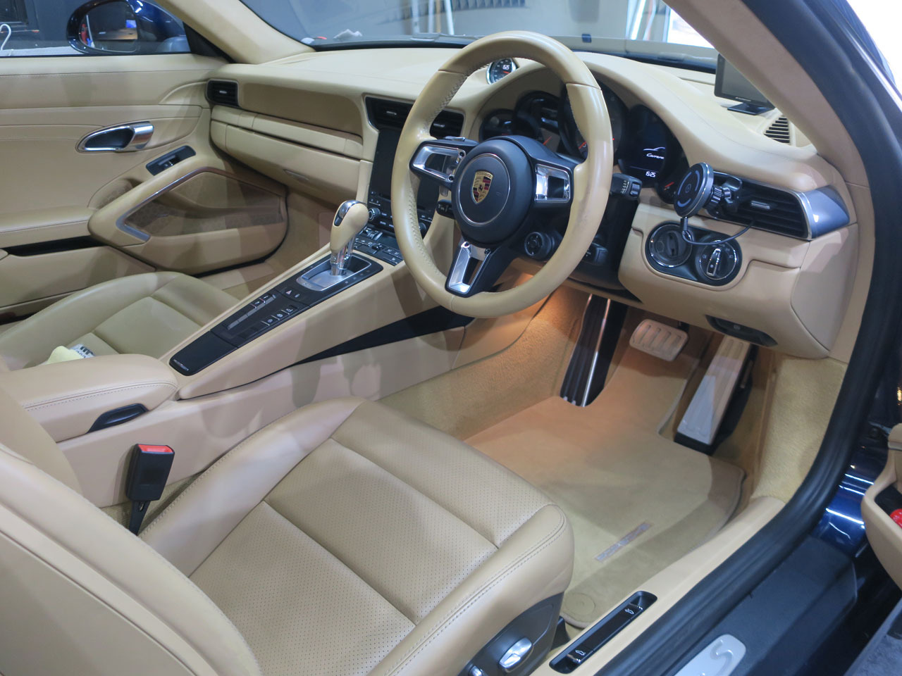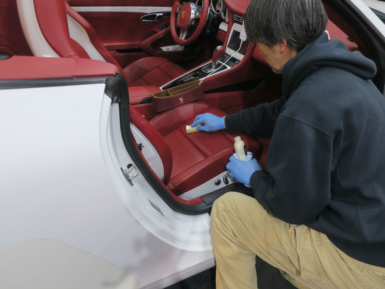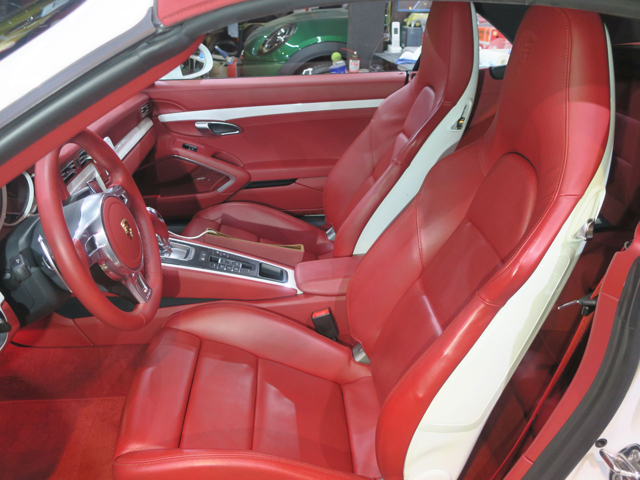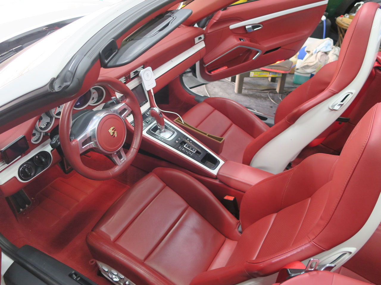 この前の911もそうでしたがスタンダードな黒の内装ではない全面ボルドーレッドのエレガント仕様ですが、色抜けも考慮しつつ無理の無い様作業を進めます